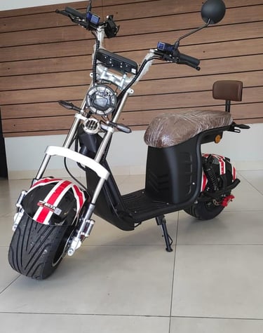 Scooters e bikes elétricas de diversos modelos, atendendo Goiânia com qualidade e preço justo.